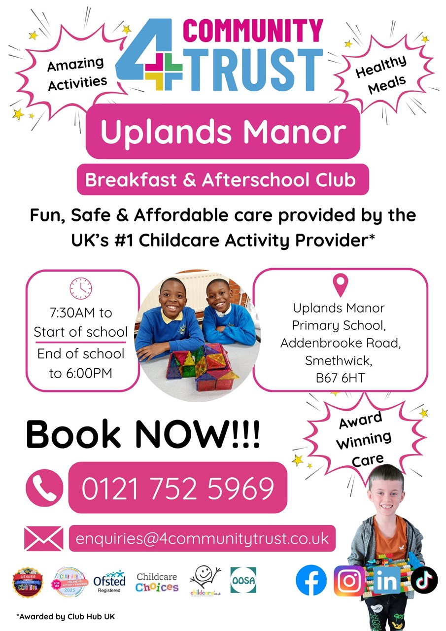 For any parents who book their child into Breakfast and/or After school club, please note that prices have changed: