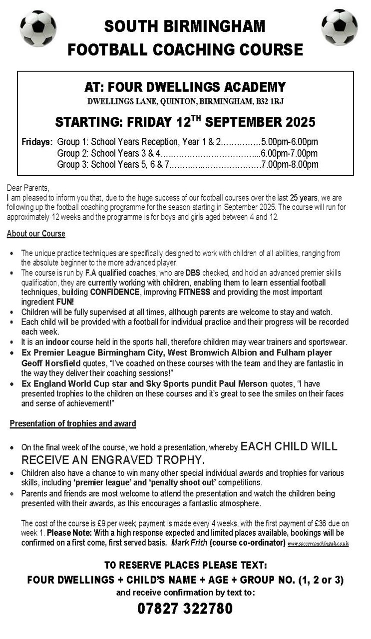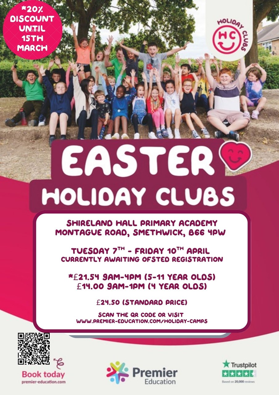- Afterschool Club (pick-up by 4:15pm, no food): £6.25