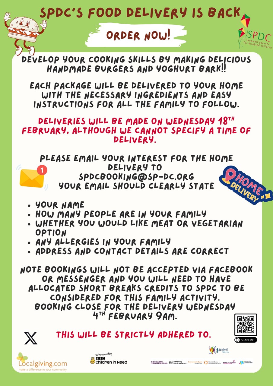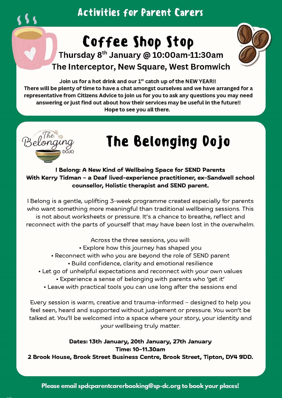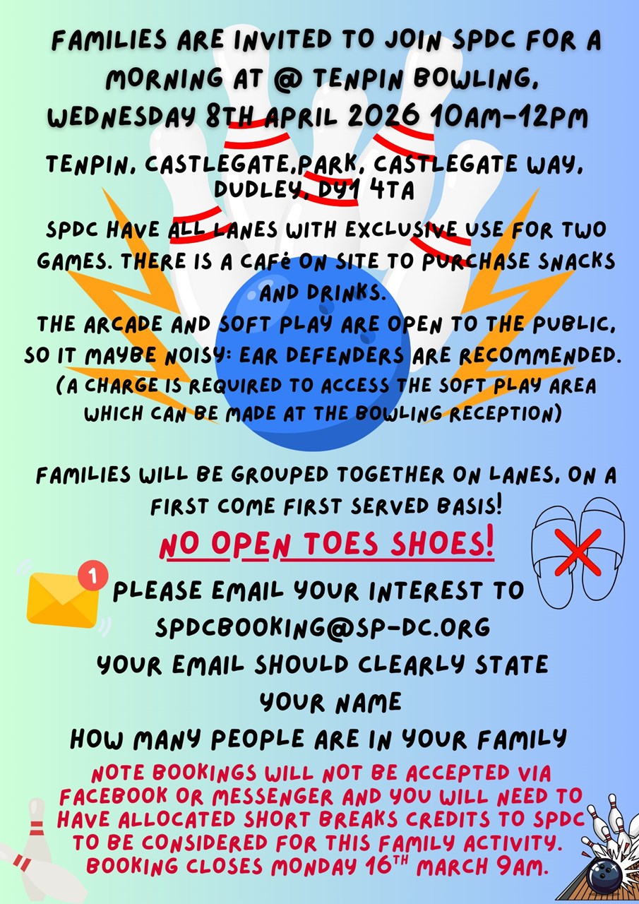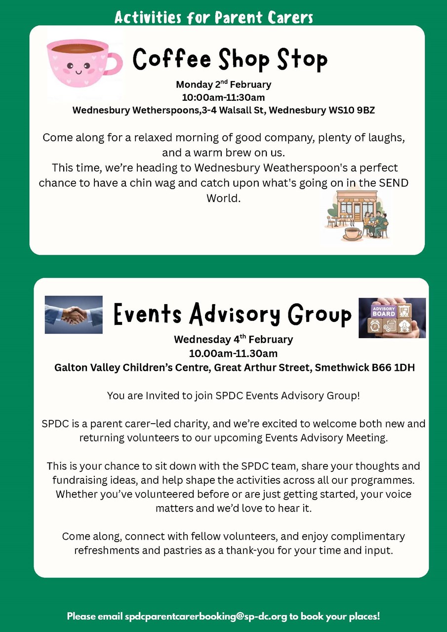 All bookings for the events must be sent to spdcparentcarerbooking@sp-dc.org