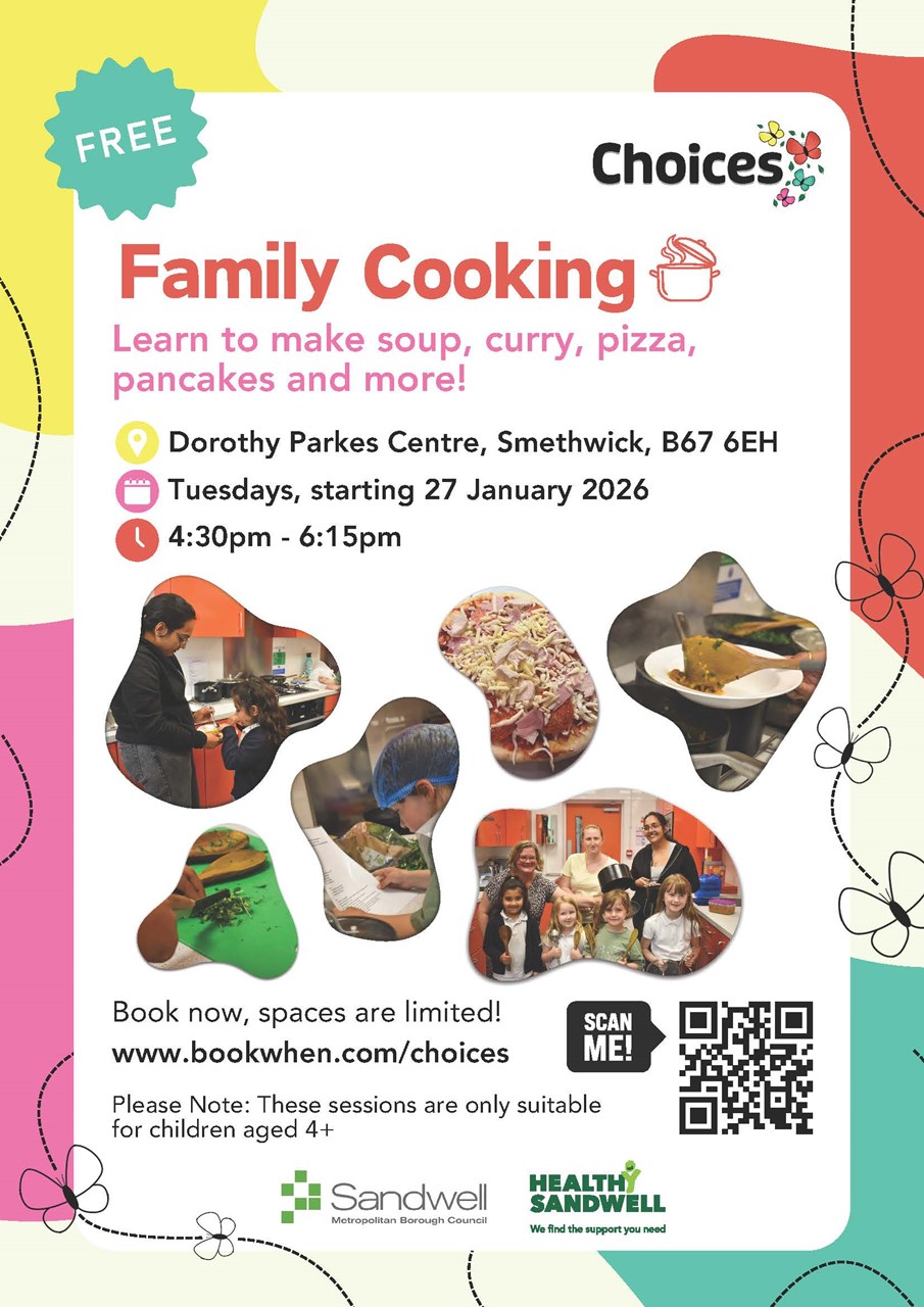 Please see attachment for details on a six-week course that includes practical cooking sessions and healthy eating tips during each 2-hour session aimed at people recovering from drugs and alcohol. Every Friday from 16th January 2026, 1pm – 3pm at Brasshouse Community Centre, Brasshouse Lane, Smethwick, B66 1BA