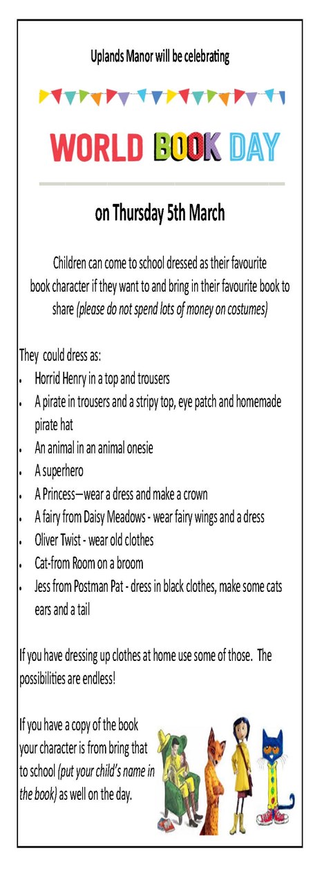 - Thursday 5th World Book Day non-uniform day