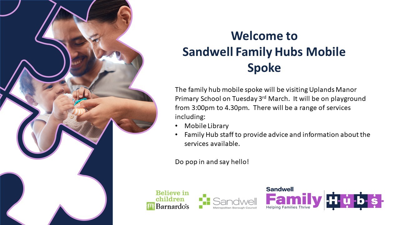 - Tuesday 3rd 3pm Sandwell Family Hub van on playground